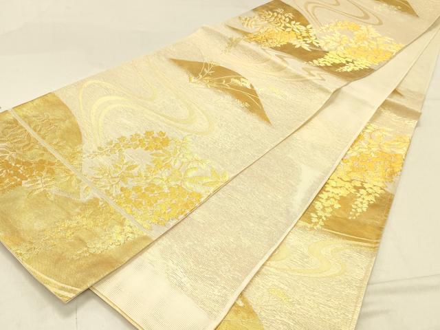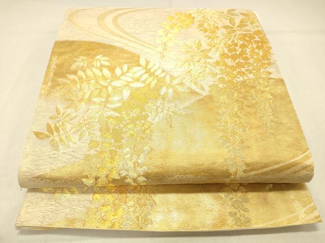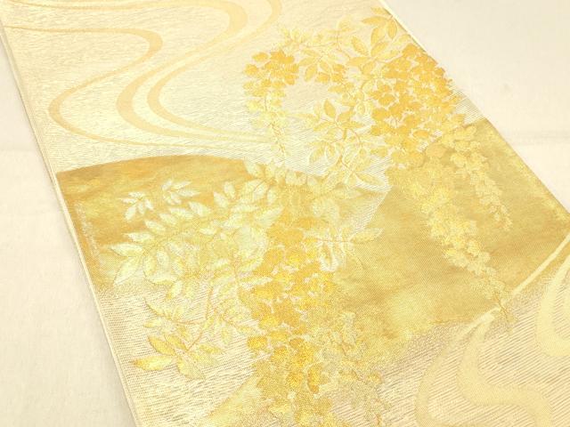 Heiwa-ya Kimono * Summer Six-Piece Pattern Obi with Flowing Water and Wisteria Flowers, Gold Thread, Pure Silk, Excellent Item, DABA0935cm