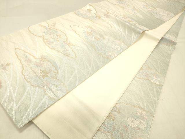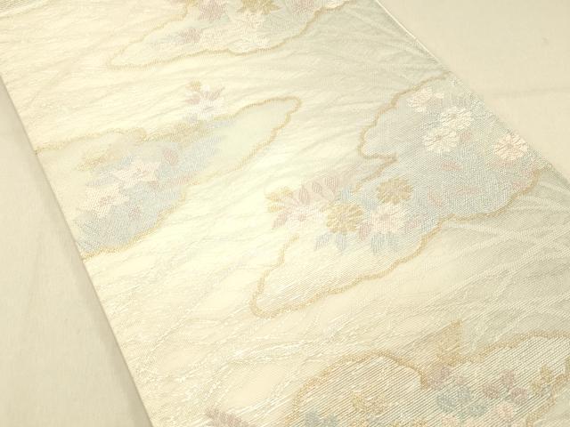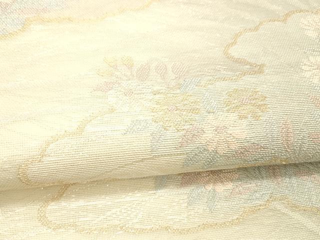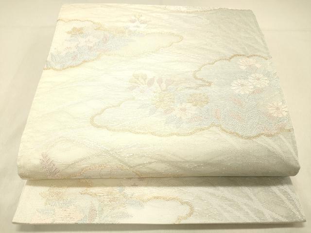 Heiwa-ya Kimono * Summer: Six-way Pattern Obi with Cloud and Flower Pattern, Gold and Silver Thread, Pure Silk, Excellent Item, DABA0937cm