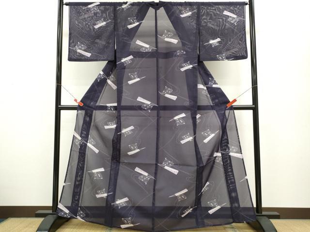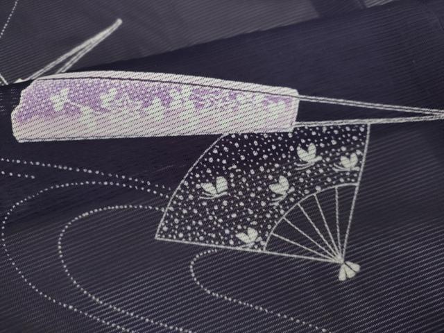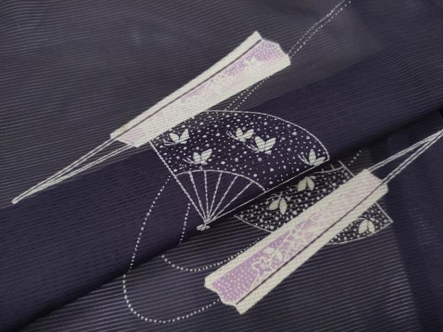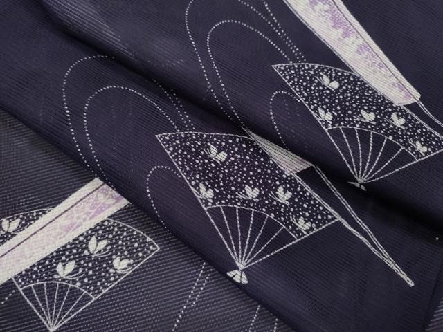 Heiwa-ya Kimono * Summer Small Pattern Silk Kimono with Fan Dance, Butterfly and Flower Design, Washable, CABB2319ze