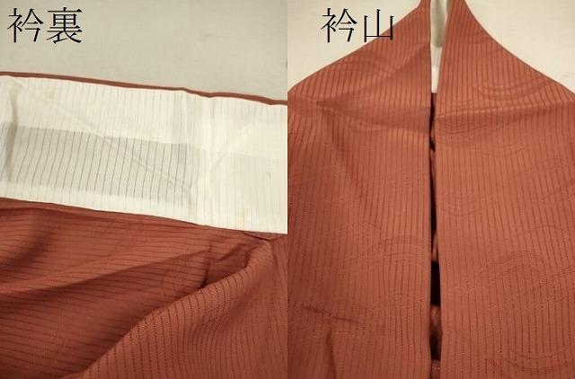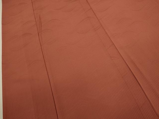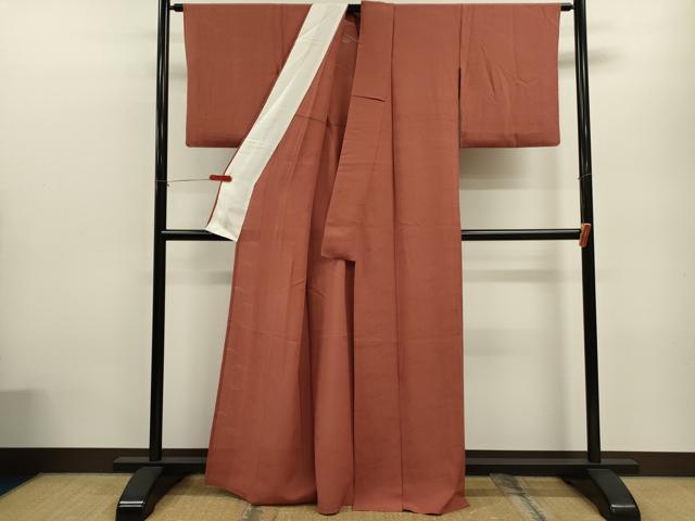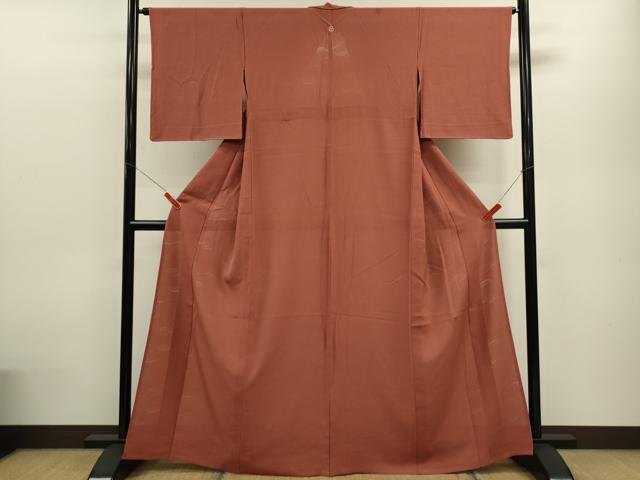 Heiwa-ya Kimono * Summer Solid Color Kimono, Vertical Silk, Standing Wave Pattern, Cinnamon-Colored, Pure Silk, Excellent Condition, CABB9698ze