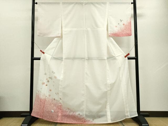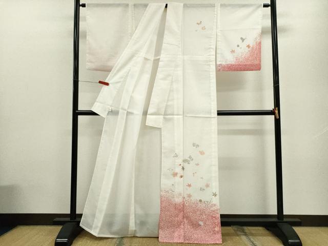 Heiwa-ya Kimono * Summer Visiting Kimono, Silk, Dancing Butterfly and Floral Design, Washable Kimono, CABB9685ze