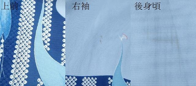 状態は接写画像のように上前に穴、後身頃・右袖に薄い汚れがございますが