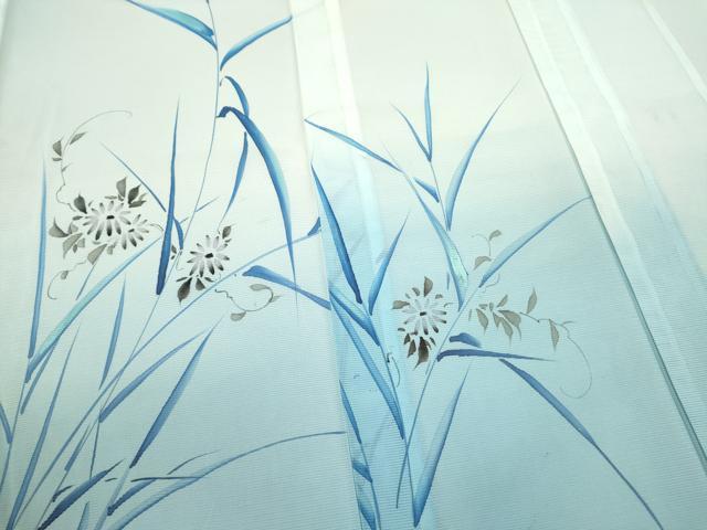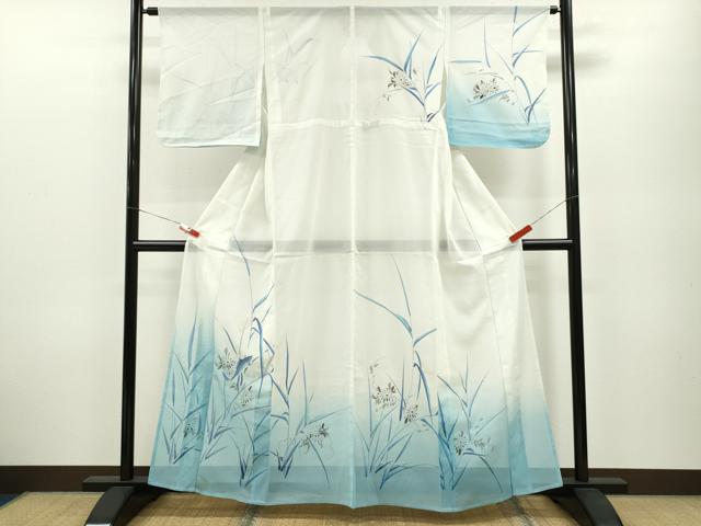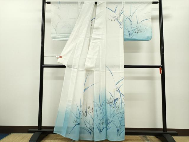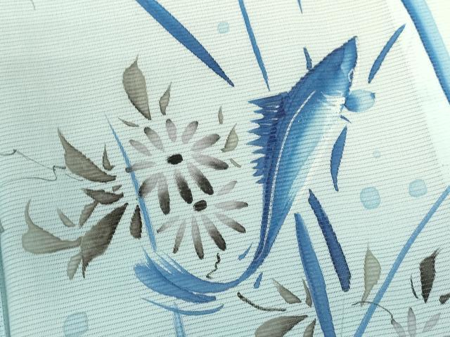 Heiwa-ya Kimono * Summer Visiting Kimono, Silk Silk, Hand-painted, Fish and Floral Design, Gradient Dye, Silver Finish, Washable, CABB2209ze