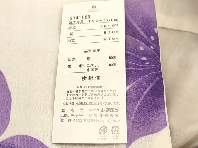 【浴衣:綿、つけ帯:化繊・未使用】