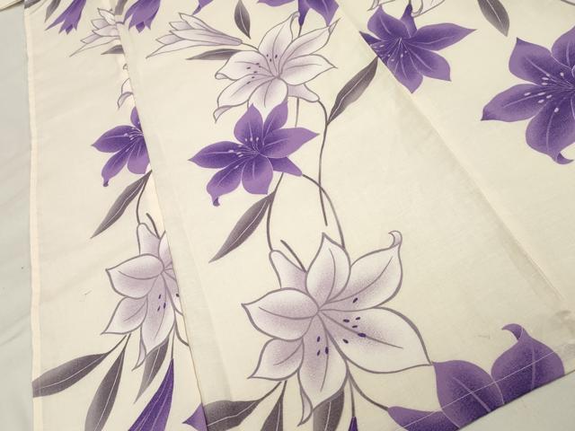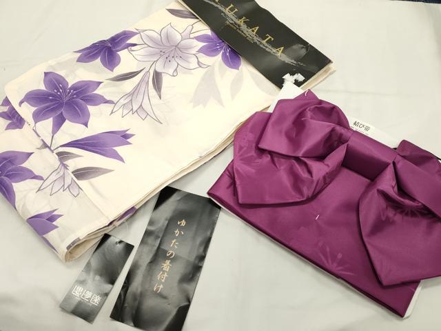 Heiwa-ya Kimono Summer Yukata and Obi Set, Lily, Cotton, Unused, CAAW5011dy