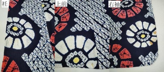 状態は接写画像のように衽・上前・右袖に薄いシミがございますが