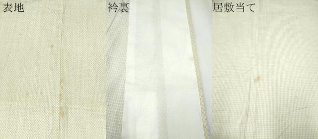状態は接写画像のように表地所々・衿裏・居敷当てにシミがございます。