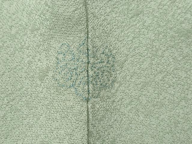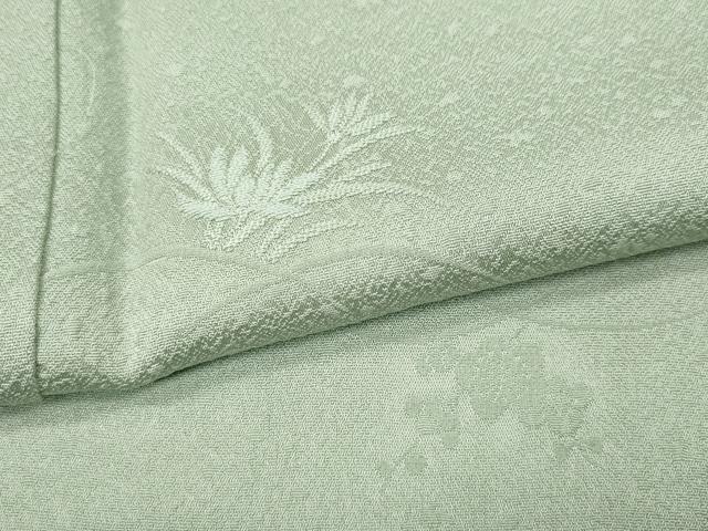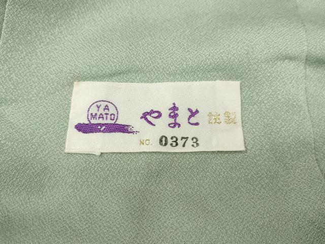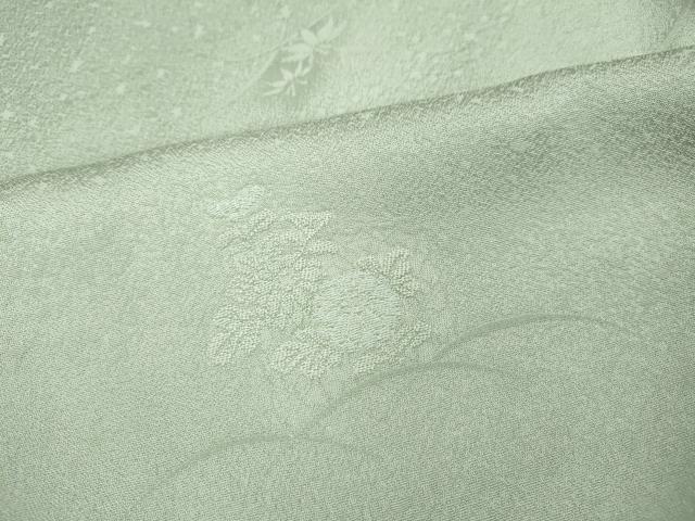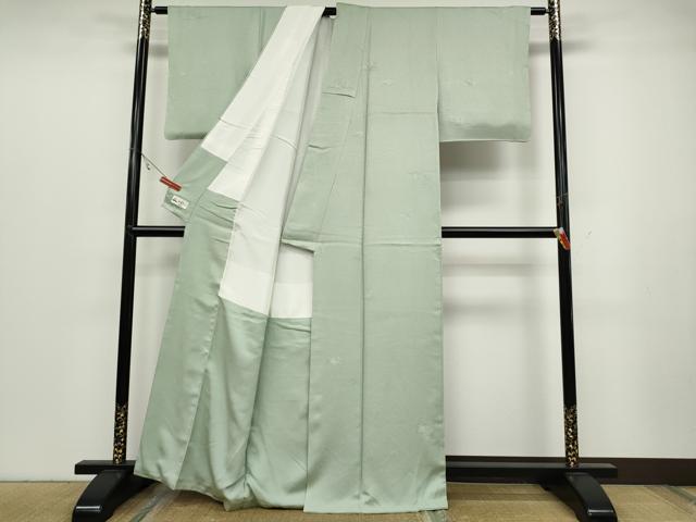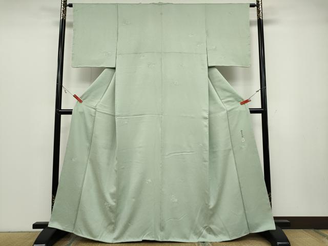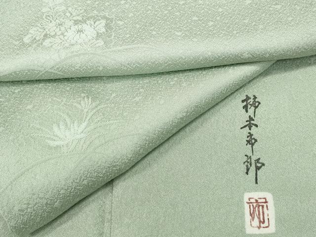 Heiwa-ya Kimono: Supervised by Kaga Yuzen artist Ichiro Kakimoto. Solid-colored kimono with floral and plant motifs in white-green. Custom-made in Yamato. Pure silk. Excellent quality. CABC2028ut