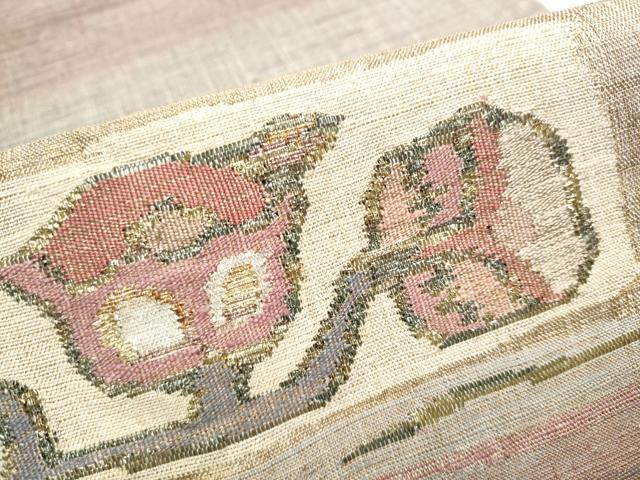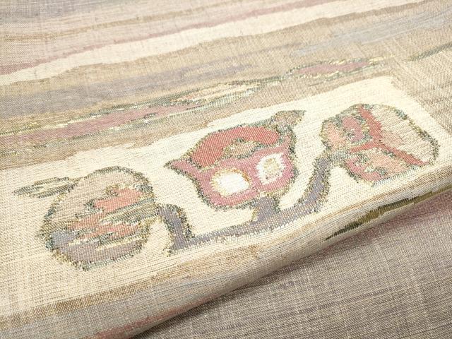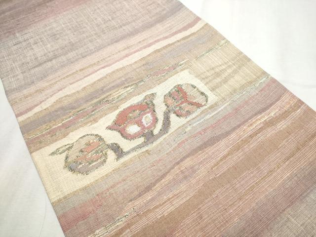 Heiwa-ya Kimono: Taiko Drum Pattern Obi (Sash), Tsumugi Fabric, Auspicious Flower Design, Gold Thread, Pure Silk, Excellent Quality, CABB9444hy