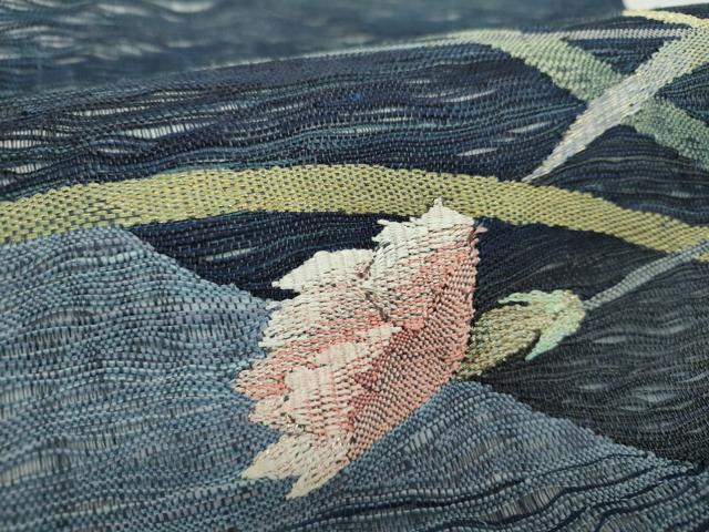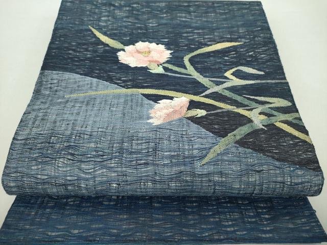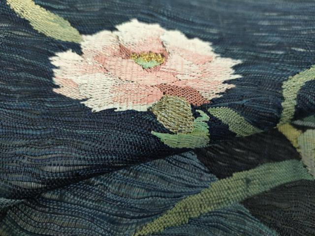 Heiwa-ya Kimono: Taiko Pattern Fukuro Obi, Three-Season Obi, Spring, Summer, Autumn, Sukui Weave, Floral Design, Gold Thread, Pure Silk, Excellent Quality, DABA1639ps