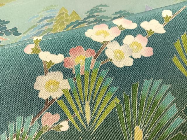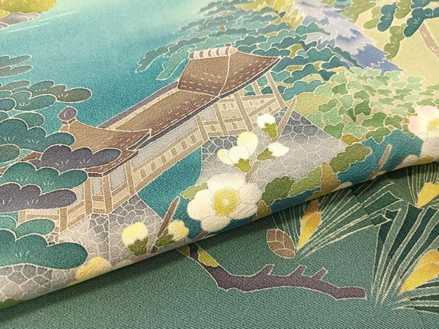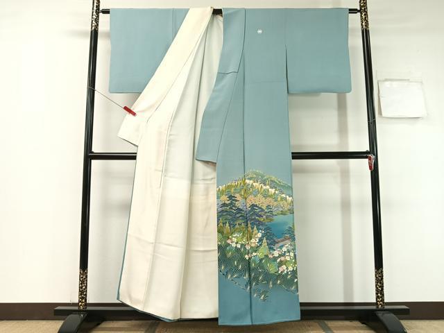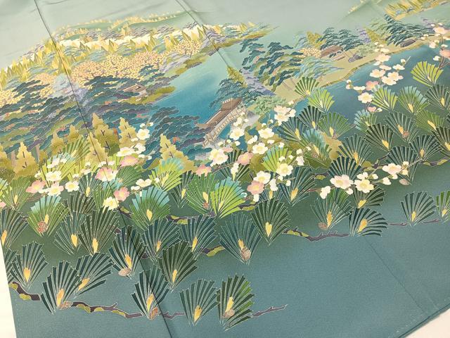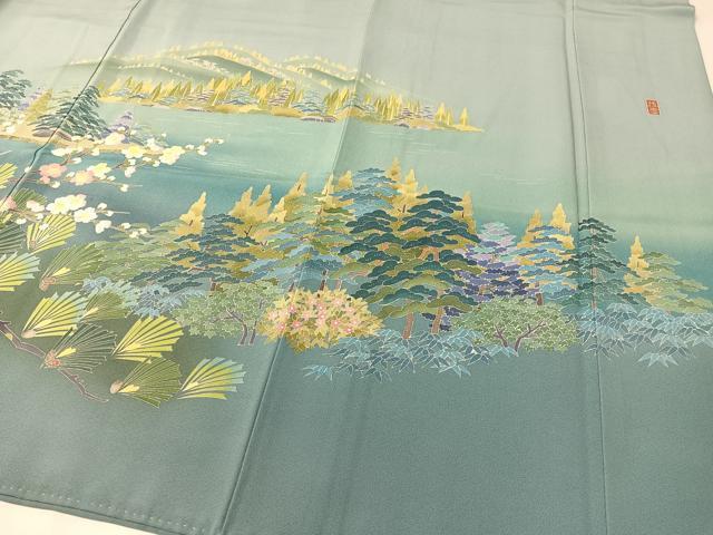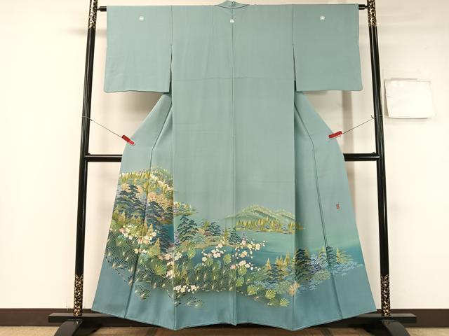 Heiwa-ya Kimono: Tokamachi Yuzen Artist Abe Kasetsu's Iro-tomesode (Colored Kimono) with Landscape Design, Pure Silk, Excellent Item, CABB5056vp