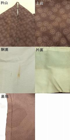 状態は接写画像のように衿山・上前・胴裏・衿裏・裏地に薄い汚れがございますが