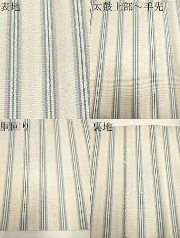 状態は接写画像のように表地所々に汚れ、太鼓上部から手先にかけて折山の線汚れ、胴回りにスレ、