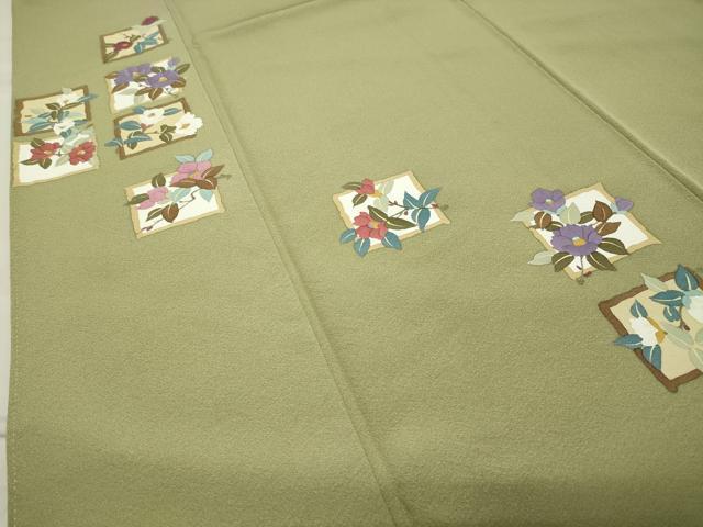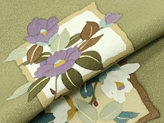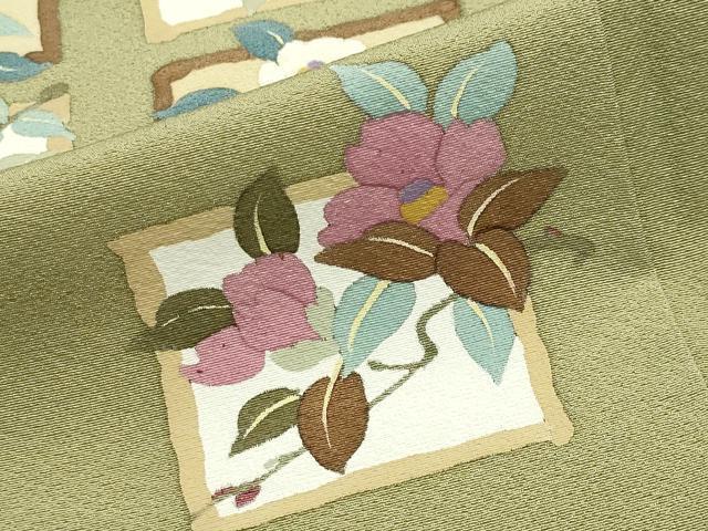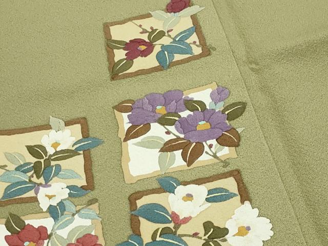 Heiwa-ya Kimono: Visiting Kimono, Branch Camellia, Pure Silk, Excellent Condition, Unused, CABB0185gh