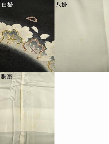 状態は接写画像のように白場にアク、八掛・胴裏にシミがございますが