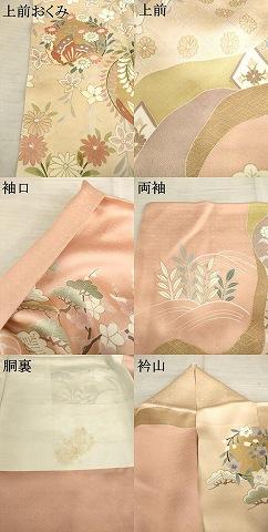 状態は接写画像のように上前・上前おくみ・両袖・胴裏にシミ、袖口・衿山に薄い汚れがございますが