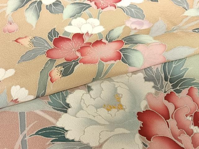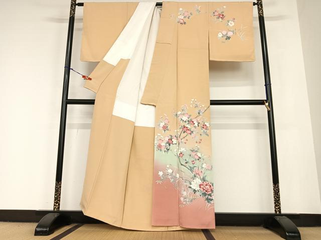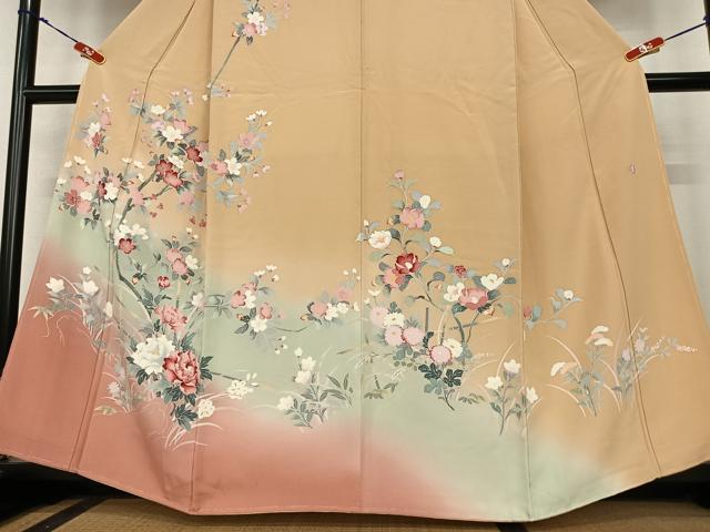 Heiwa-ya Kimono: Visiting Kimono, Yuzen, Artist's Work, Branch and Flower Pattern, Gradient Dyed, Pure Silk, Excellent Condition, Unused, AABB6522zg
