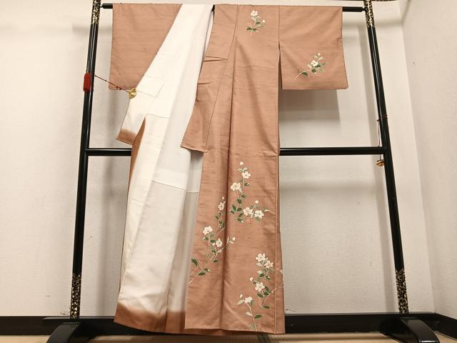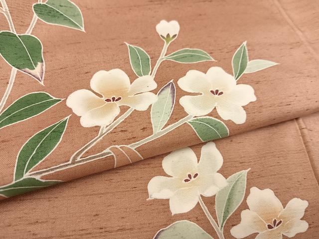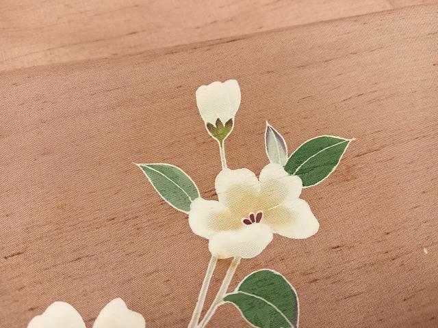 Heiwa-ya Kimono: Visiting Kimono, Yuzen, Artist's Work, Tsumugi Fabric, Branch and Flower Pattern, Pure Silk, Excellent Quality, AABD4415ph