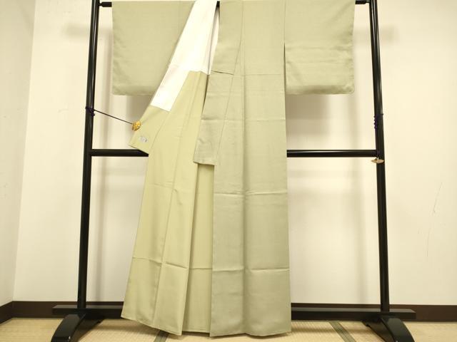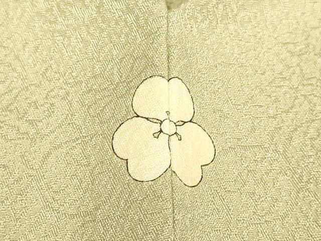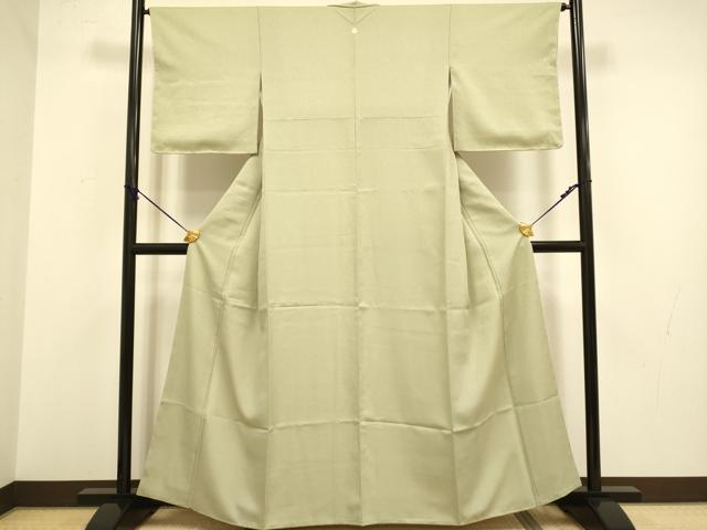 Heiwa-ya Kimono: Washable, Premium Kimono by Hanabusa English. Solid Color Kimono with Floral Arabesque Pattern, White Oak, Unused. DABA8868du