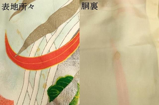 着物【正絹】の状態は接写画像のように表地所々・胴裏に汚れがございますが