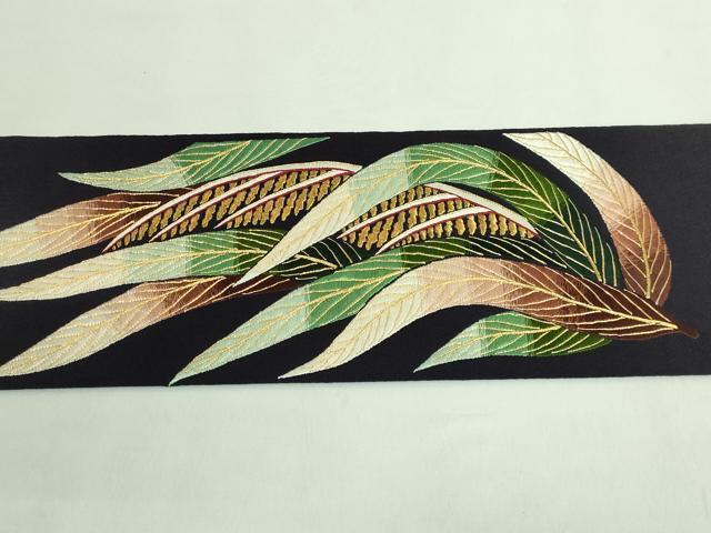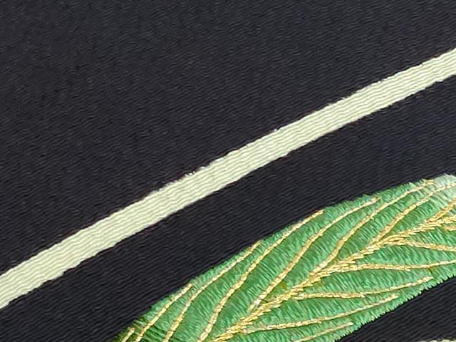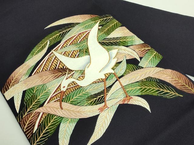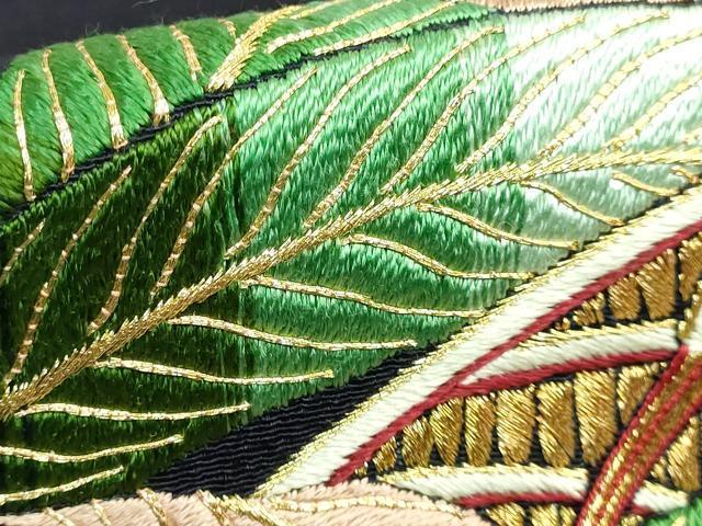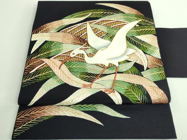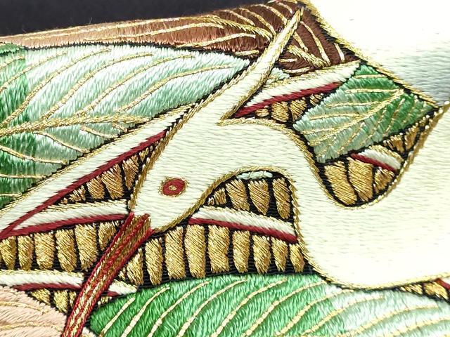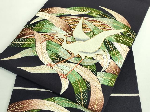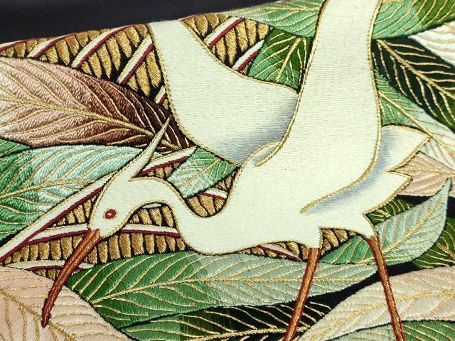 Heiwaya Honten: Exquisite Urano Riichi 9-inch Nagoya Obi (Sash), Fully Embroidered with White Heron Pattern on a Black-Red Background with Gold Thread, and Oni-Shibo Chirimen (DZAB2859kh6)