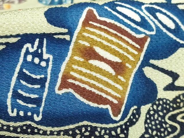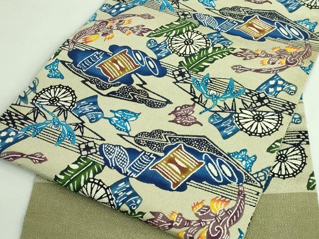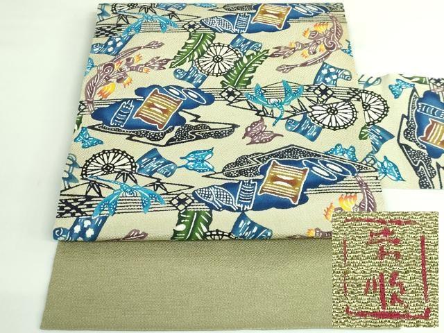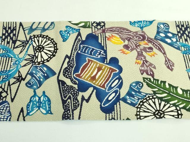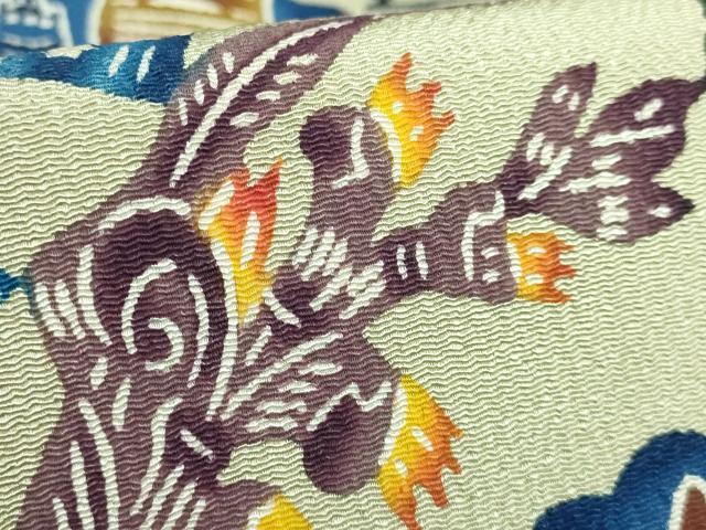 Heiwaya Honten: Highest Quality: Eiju Shiroma, Authentic Ryukyu Bingata, 9-inch Nagoya Obi, Dancing Butterfly and Dragonfly Designs, Light Wasabi-Colored, Oni-Shibo Chirimen, Excellent Item, DZAB3182kh6