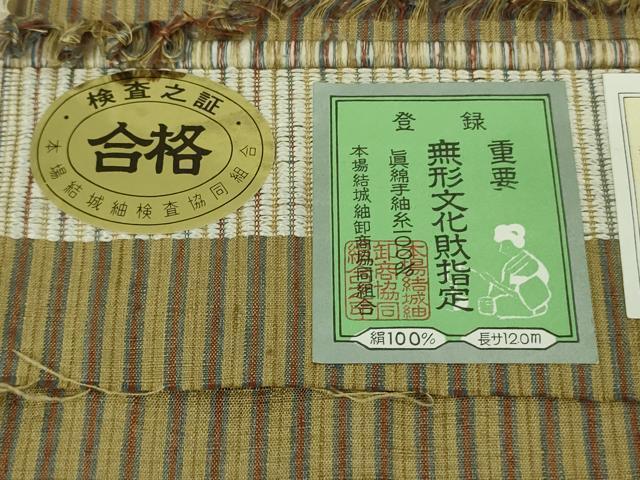 Heiwaya Honten: Premium Authentic Yuki Tsumugi Silk, Important Intangible Cultural Property, Striped, with Certificate of Authenticity, Excellent Quality, DZAB3094kh6