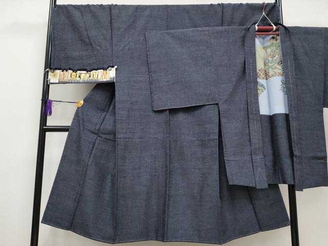 Heiwaya Honten: Premium Men's Authentic Mawata Katsuyuki Tsumugi Ensemble, King Size, Solid Color, Blue-Brown, Certificate of Authenticity Included, Excellent Condition, Unused, CYAA1893s5
