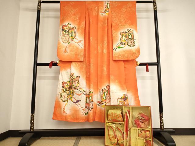 小物の状態は接写画像のように草履・バッグ・扇子・御守りに汚れがございますが