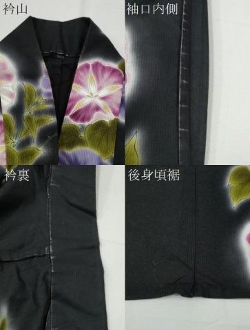 衿山・袖口内側・衿裏に薄い汚れ、後身頃裾部分に糸解けがございますが