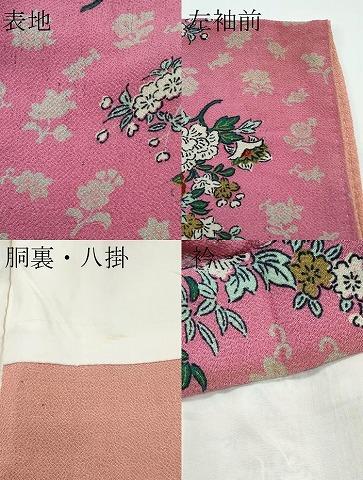 状態は接写画像のように、表地所々・胴裏・八掛に薄い汚れ、左袖前・衿に汚れがございます。