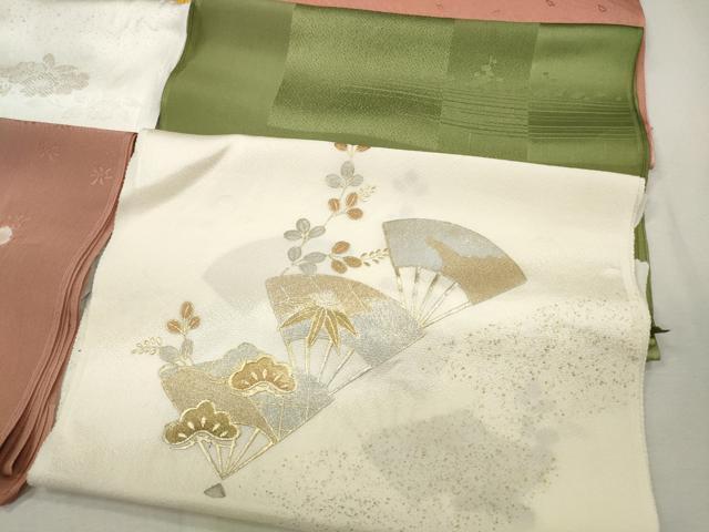 Heiwaya Kimono★Japanese clothing accessories, 10 high-quality obiage sashes, gold and silver thread, gold-threaded fabric, for formal wear, embroidery, fan-shaped pine pattern, gold thread, excellent item, CAAI9977qe