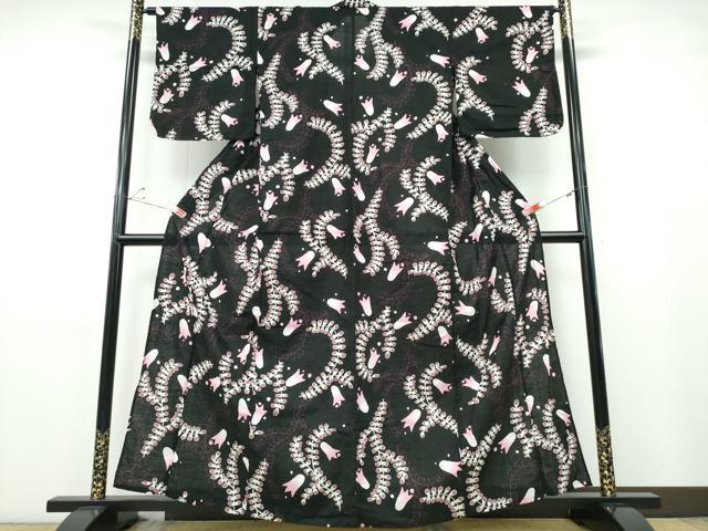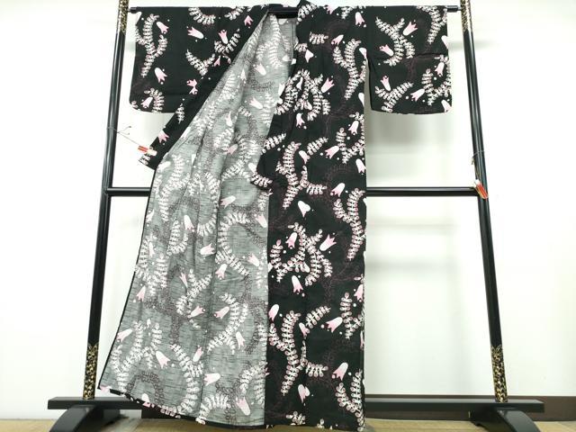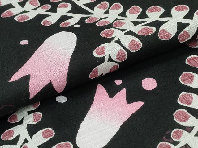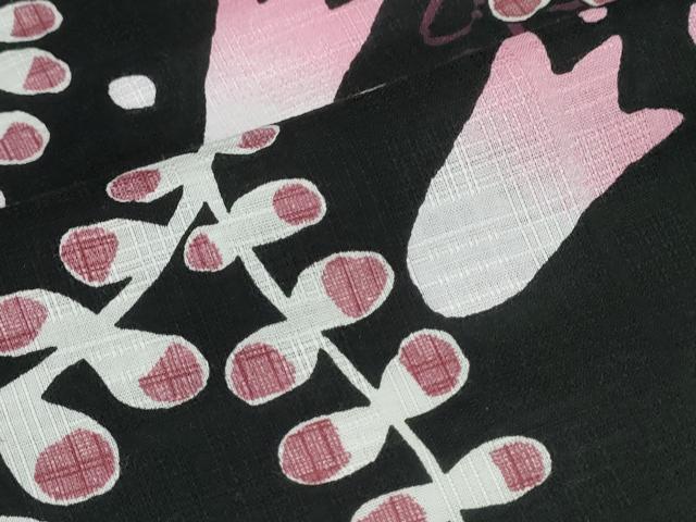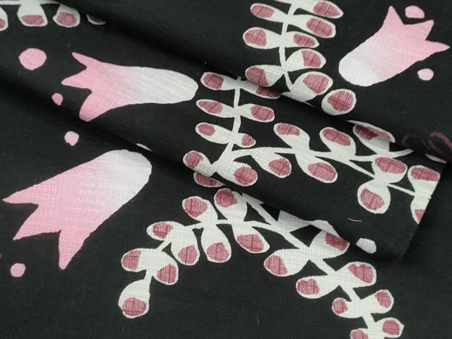 Heiwaya Kimono ∴ Summer Yukata, Floral Pattern, Black Background, Cotton, Excellent Quality, CABE8986ng