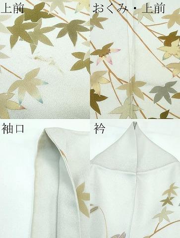上前に汚れ、おくみ・上前に薄いシミ、袖口・衿山に薄い汚れがございますが、