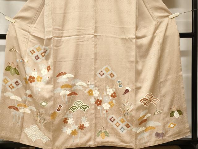 Heiwaya Kimono ■ Formal Visiting Kimono, Auspicious Pine and Plum Blossom Pattern, Gold Leaf, Pure Silk, Exquisite Item, CABF4115ev
