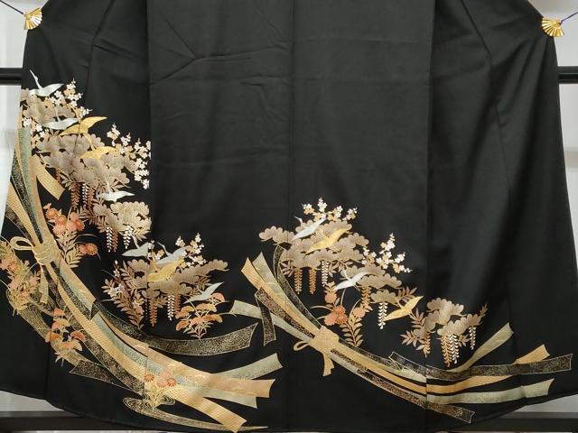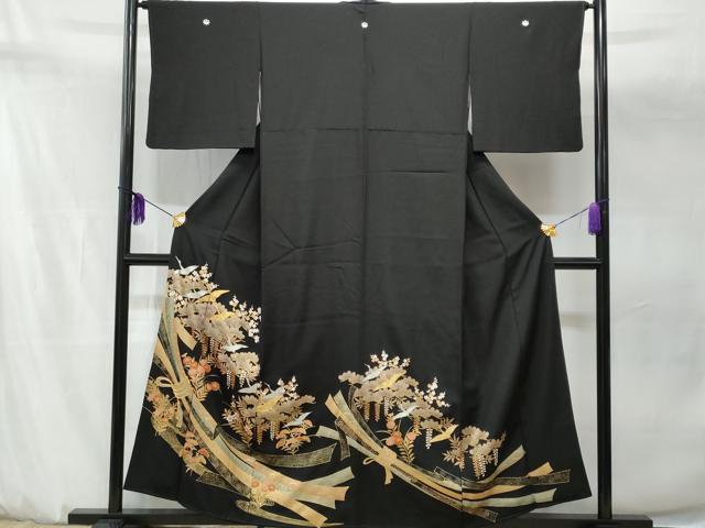 Heiwaya Kimono ■ Gorgeous black formal kimono with embroidery, a sashed noshi (a traditional Japanese wrapping), a flying crane, wisteria, and a gold-laced, pure silk kimono. CABA2527fb