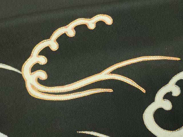 Heiwaya Kimono ■ Gorgeous black formal kimono with embroidery and flying crane design, gold and silver accents, pure silk, exquisite item, DAAZ9794sf