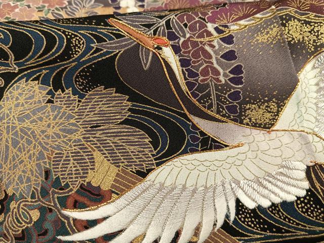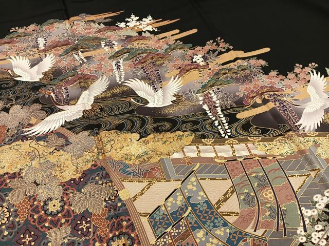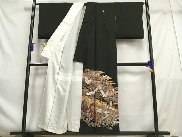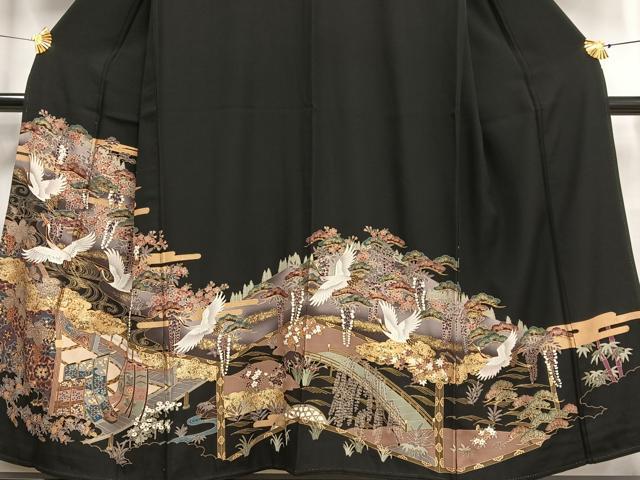 Heiwaya Kimono ■ Gorgeous black formal kimono with embroidery, flying cranes, wisteria, and floral motifs, gradation dyeing, gold accents, pure silk, exquisite item AABE3307oa