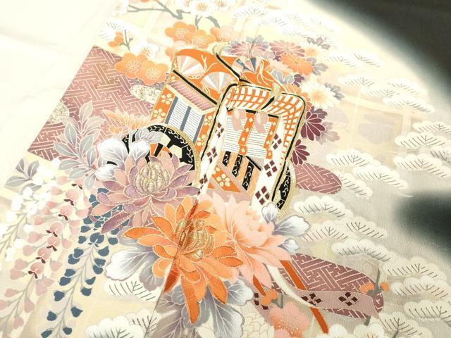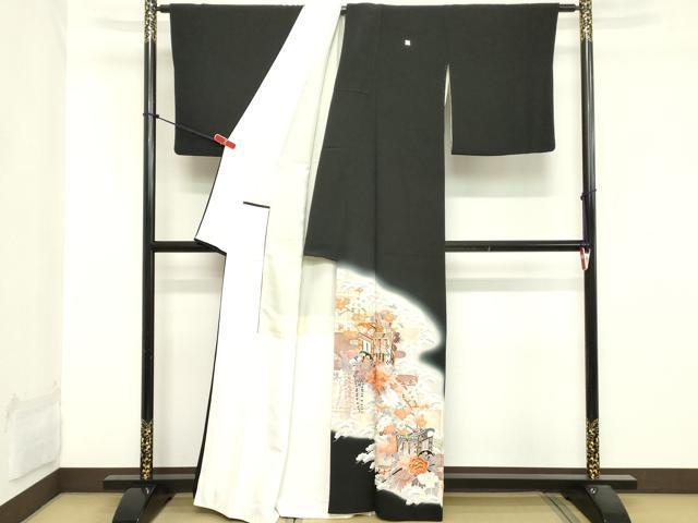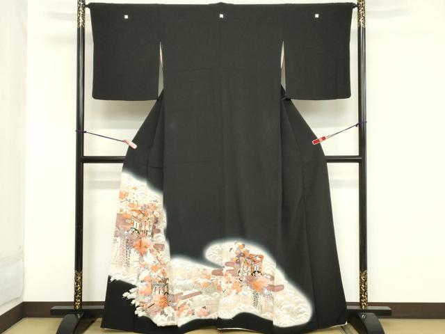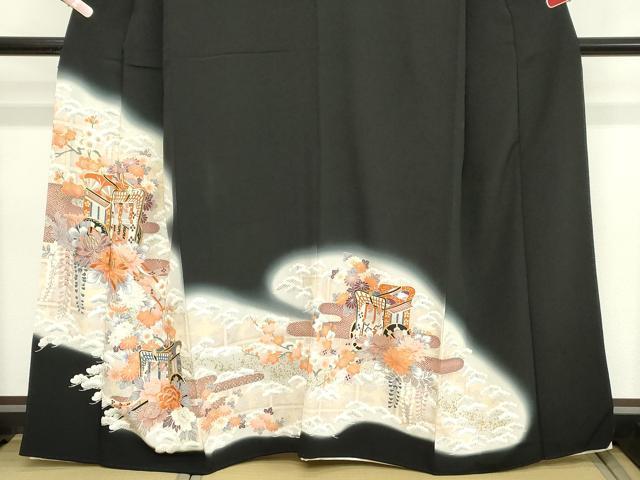 Heiwaya Kimono ■ Gorgeous black formal kimono with embroidery, imperial carriage and floral motifs, gradation dyeing, gold accents, pure silk, exquisite item DABB2186cd