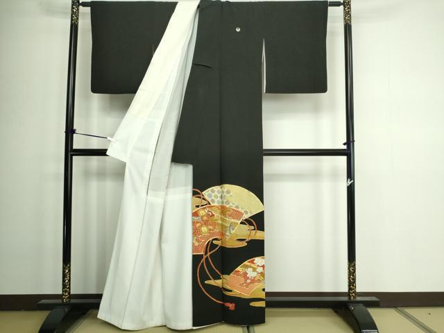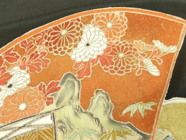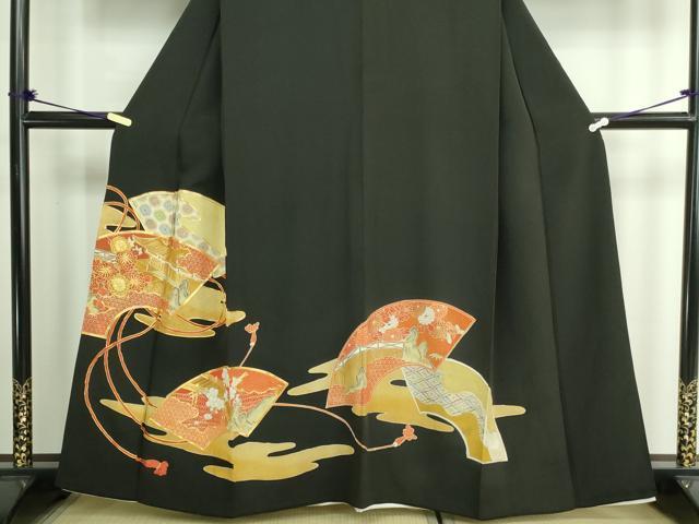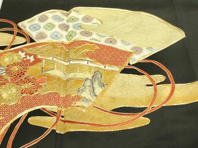 Heiwaya Kimono ■ Gorgeous black formal kimono with koma embroidery and landscape design on paper, gold accents, pure silk, exquisite item DAAZ9734sf