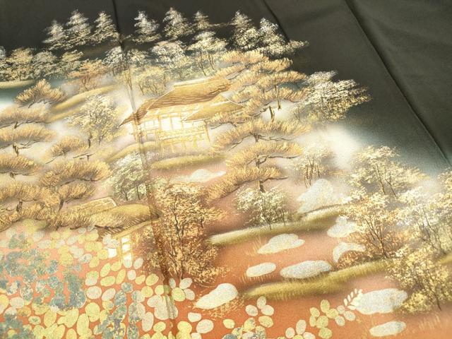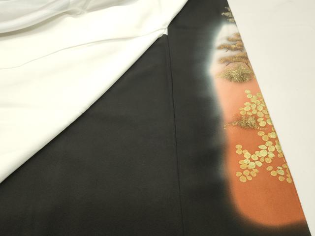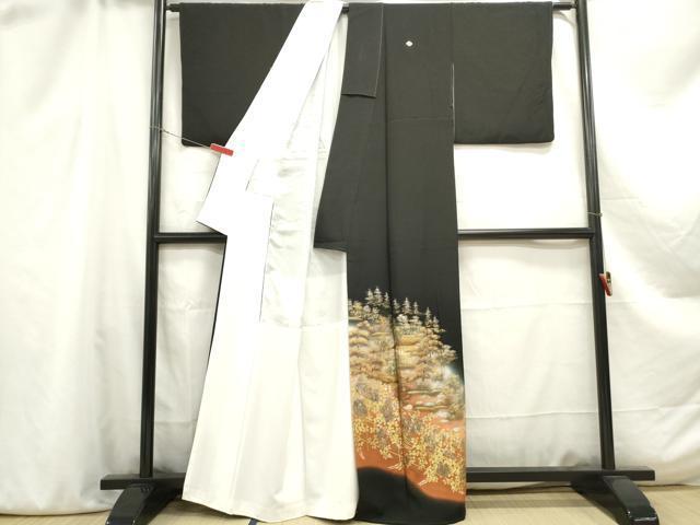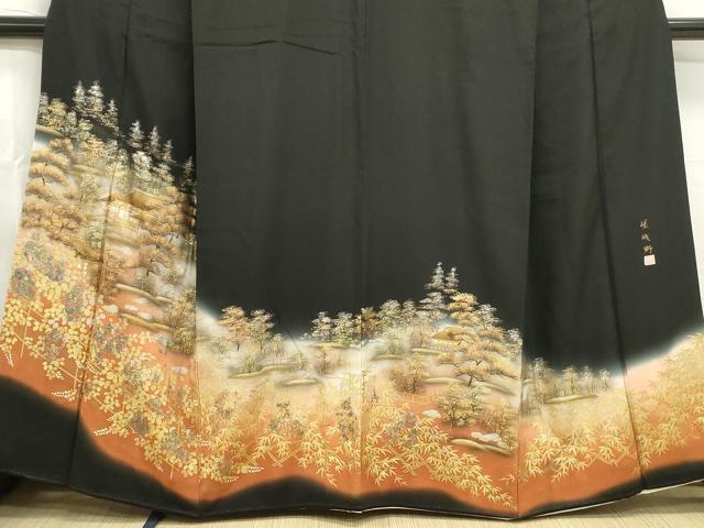 Heiwaya Kimono ■ Gorgeous Black Tomesode (Tomesode) - Artist's Hand-Painted Landscape Design of Sagano, Gradient Dyeing, Gold and Silver Accents, Pure Silk, Excellent Item, DABA9072qa