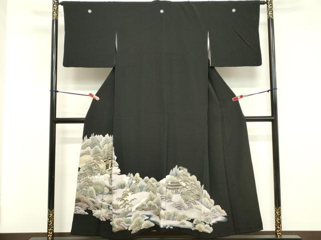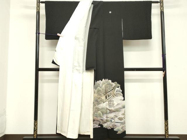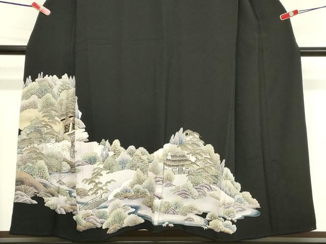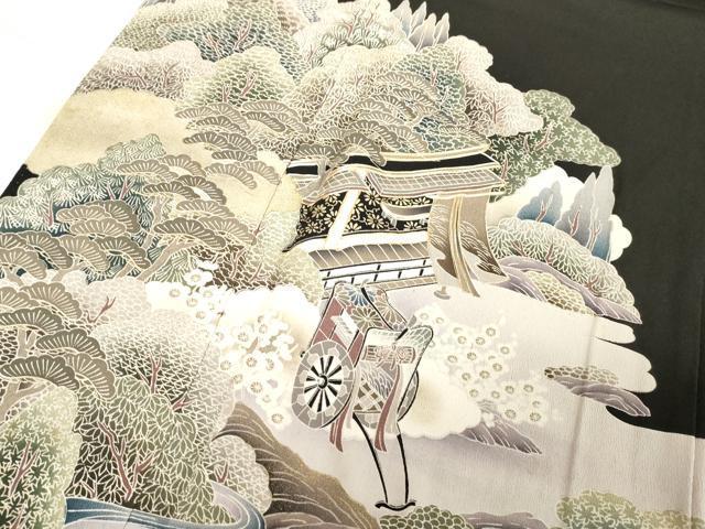 Heiwaya Kimono ■ Gorgeous Black Tomesode with Imperial Carriage Landscape Design, Gradient Dye, Gold Accents, Pure Silk, Excellent Item, DABA5255cd