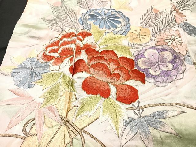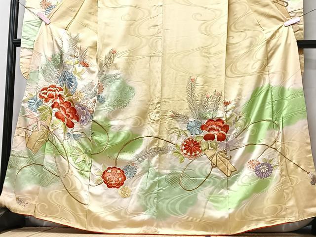Heiwaya Kimono ■ Gorgeous Furisode Kimono with Koma Embroidery and Decorative Floral Design, Gold and Silver Thread, Pure Silk, Excellent Quality, CABB3068xe