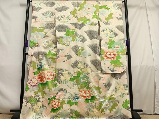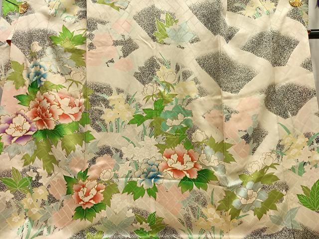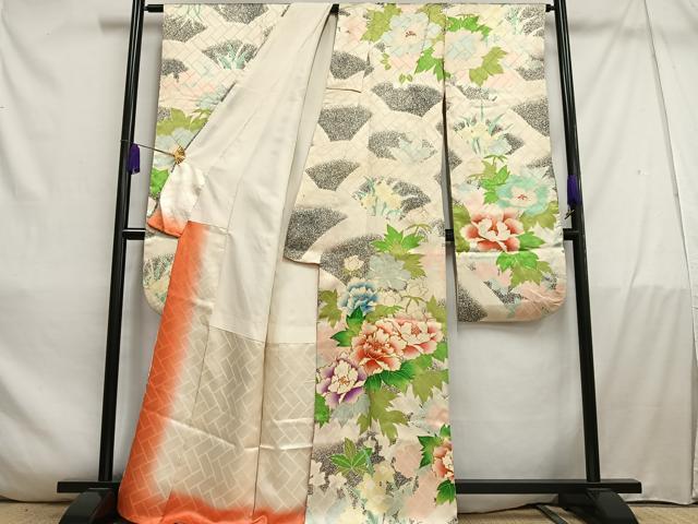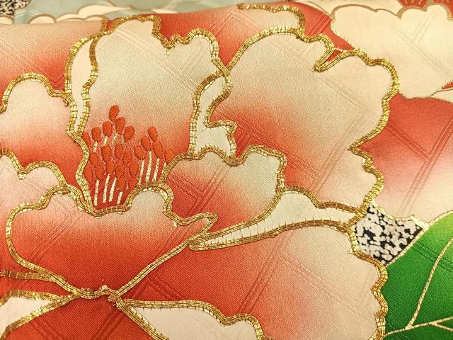 Heiwaya Kimono ■ Gorgeous Furisode Kimono with Koma Embroidery, Floral Pattern, Gradient Dye, Gold Accents, Pure Silk, Excellent Quality AABD2235oa