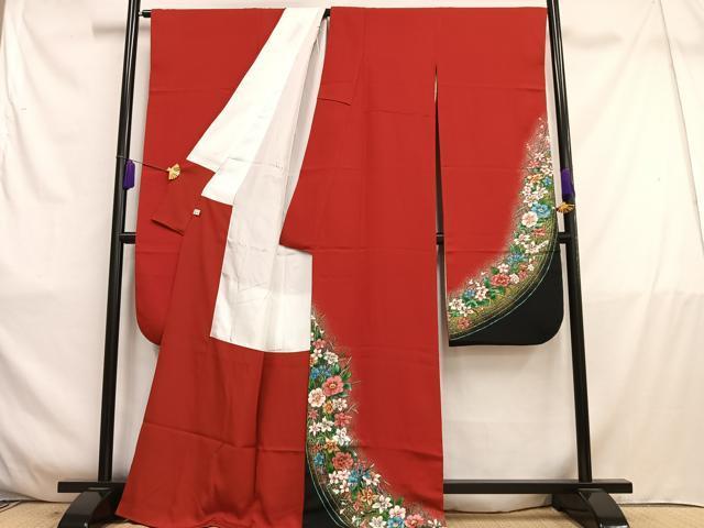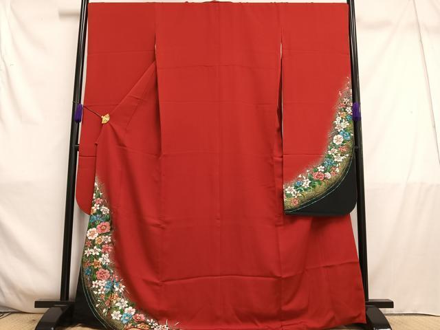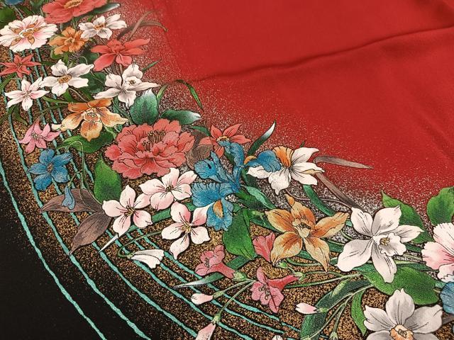 Heiwaya Kimono ■ Gorgeous Furisode with Floral and Grass Design, Gold and Silver Accents, Pure Silk, Suzunoya, Excellent Quality, AABC7561oa
