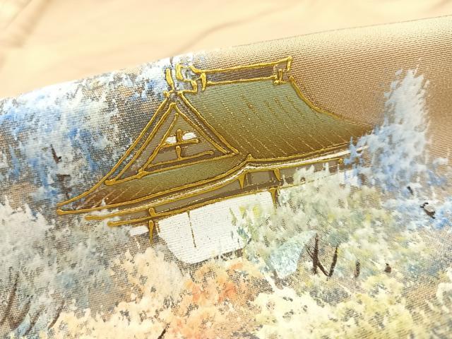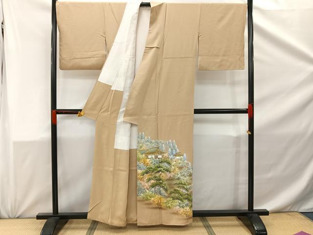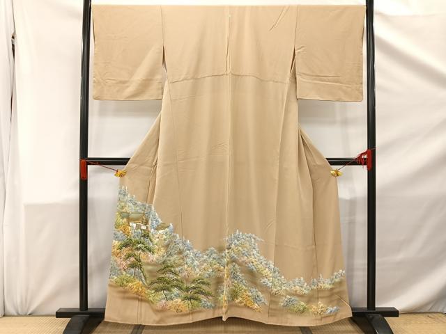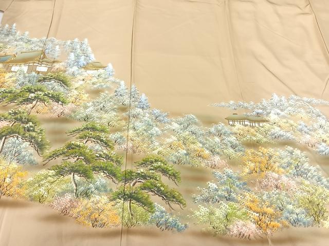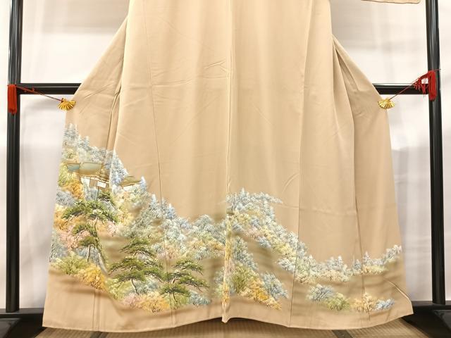 Heiwaya Kimono ■ Gorgeous Iro-tomesode (colored formal kimono) Hand-painted Landscape and Forest Design with Gold Accents, Pure Silk, Excellent Item, AABC8616uw