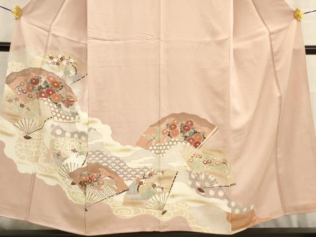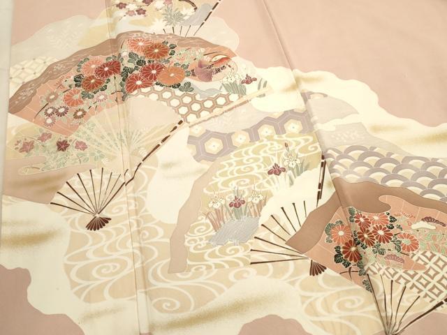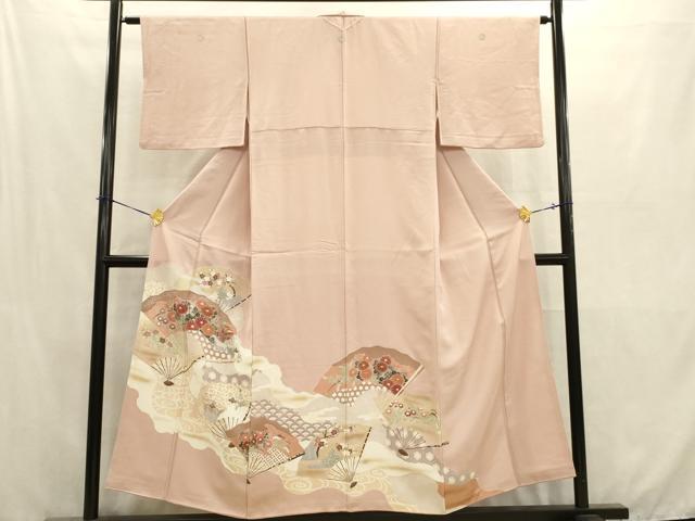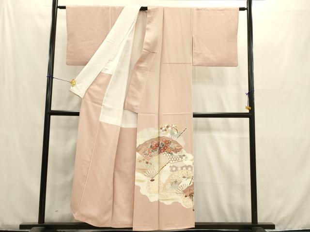 Heiwaya Kimono ■ Gorgeous Iro-tomesode (Fan-shaped Mandarin Duck and Flower Design) with Gold Accents, Pure Silk, Excellent Item AABD1283ma