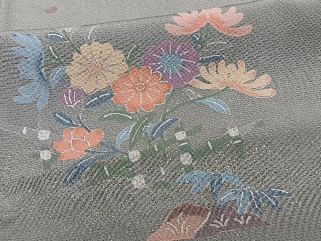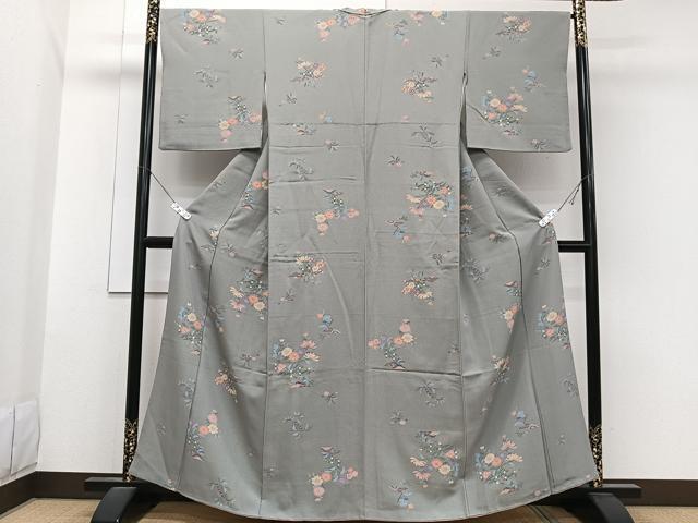Heiwaya Kimono ■ High-quality Komon (small pattern) with auspicious floral motifs and gold accents. Pure silk. Excellent quality. CABB2638xi