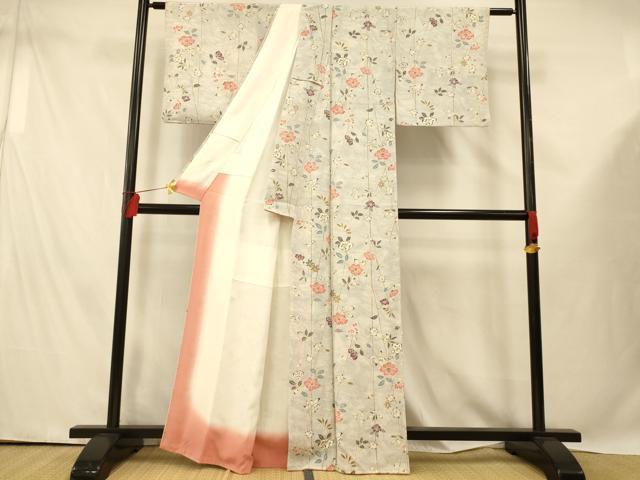 Heiwaya Kimono ■ High-quality Komon (small pattern) with Kasumi-ebi (flower) design, oni-shibo (cream-like) crepe, pure silk, exquisite item AABE3867fw