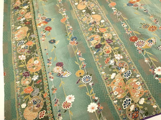 Heiwaya Kimono ■ High-quality Komon (small pattern) with snow-ringed fan-patterned flower motifs, gradation dyeing, gold accents, pure silk, exquisite item DAAX8241du